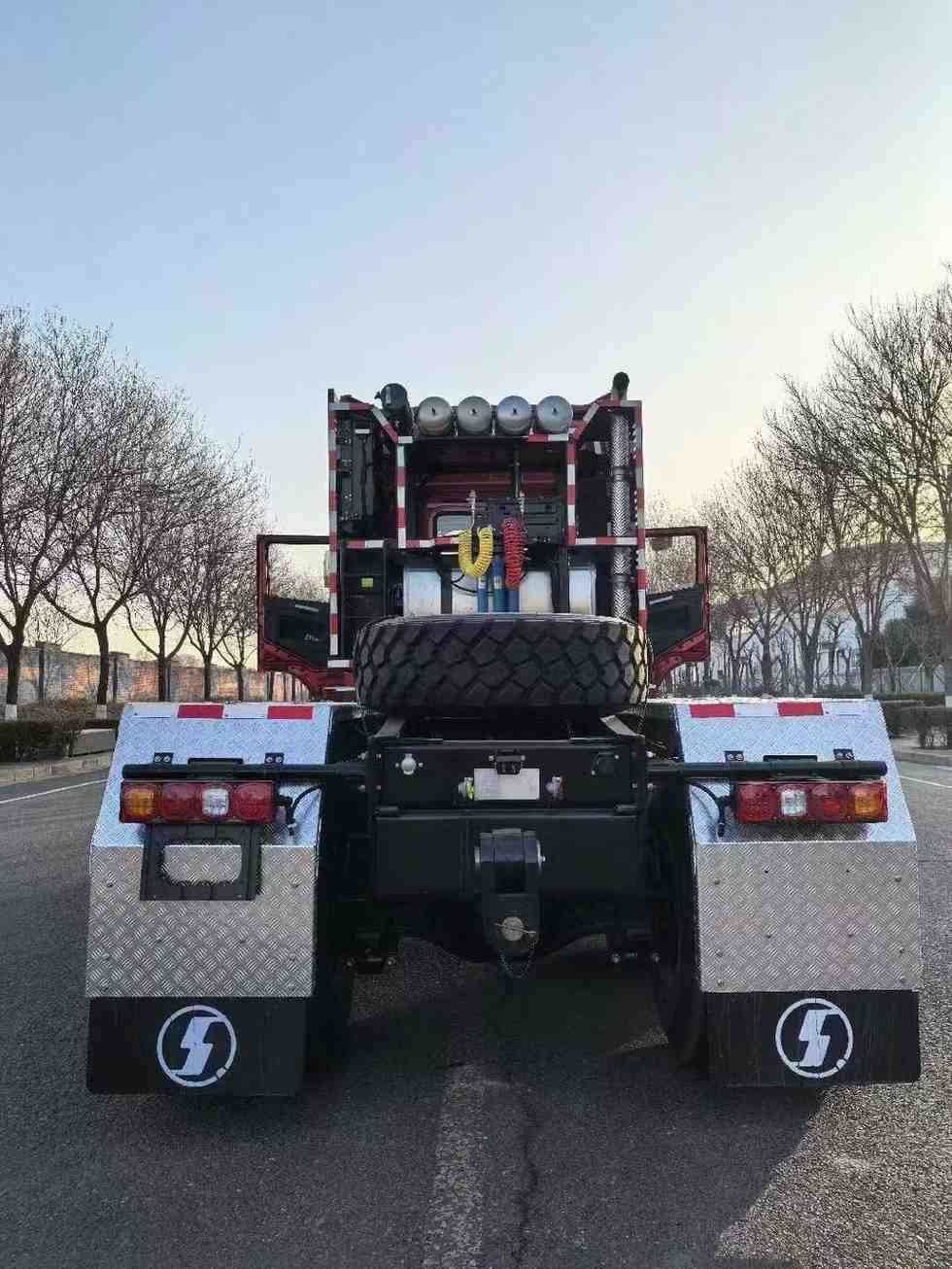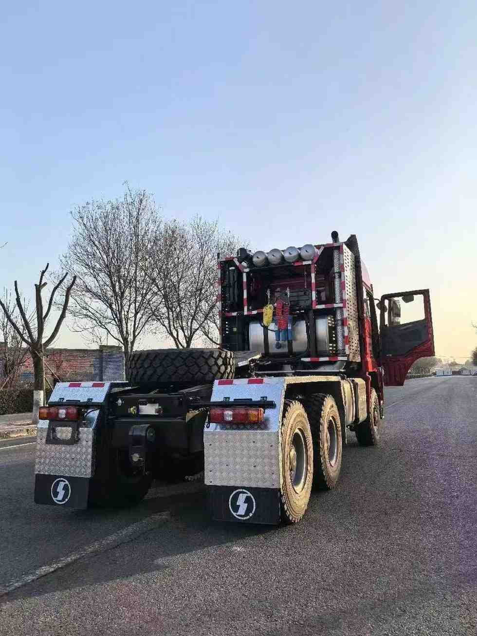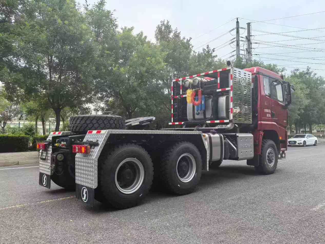 SHACMAN  X5000L Extended high roof cab with side deflector without top deflector / Color: Enamel Red / Drive Type 6 × 6 / Cummins M15NS660 / Allison 4970 SP-PR Gearbox with hydrodynamic torque converter/ ZQC2800 brake (with brake cooling) / 9 tons MAN front steering drive bridge speed ratio – 5.92 / 16 ton class MAN midway bridge – 5.92/ front bridge tyres 365 / 85R20 vacuum tyres, trim TRY66 / midway bridge tyres 12.00R2016PR / Domestically reinforced 90 double saddle seats / special rack for large tractor vehicles (970-850) × 300 (8 + 7) / wheelbase 3900 + 1450 / Electric flip / versatile steering wheel (with set speed cruise) / daytime driving lights / domestically powered steering wheel/ Auxiliary cooling system / Aluminum alloy fuel tank: 760L + 700L + 400L / 3-way camera / Tianjian Zhixing with display screen / 220Ah low temperature maintenance-free storage battery / Special bumper for large tractor / Special front and rear traction device for large tractor / Integral closed metal fender for middle rear axle / Automatic control Active thermostat air conditioner / electric window shaker / central lock (dual remote control, Two mechanical keys) / Electric heated mirror / Emergency warning lamp and 4 front working lights shipped on the truck, Factory not installed / LDWS + FCW + ESC + ABS / Chassis version: Super Version / Issued SX4259XE5 certificate